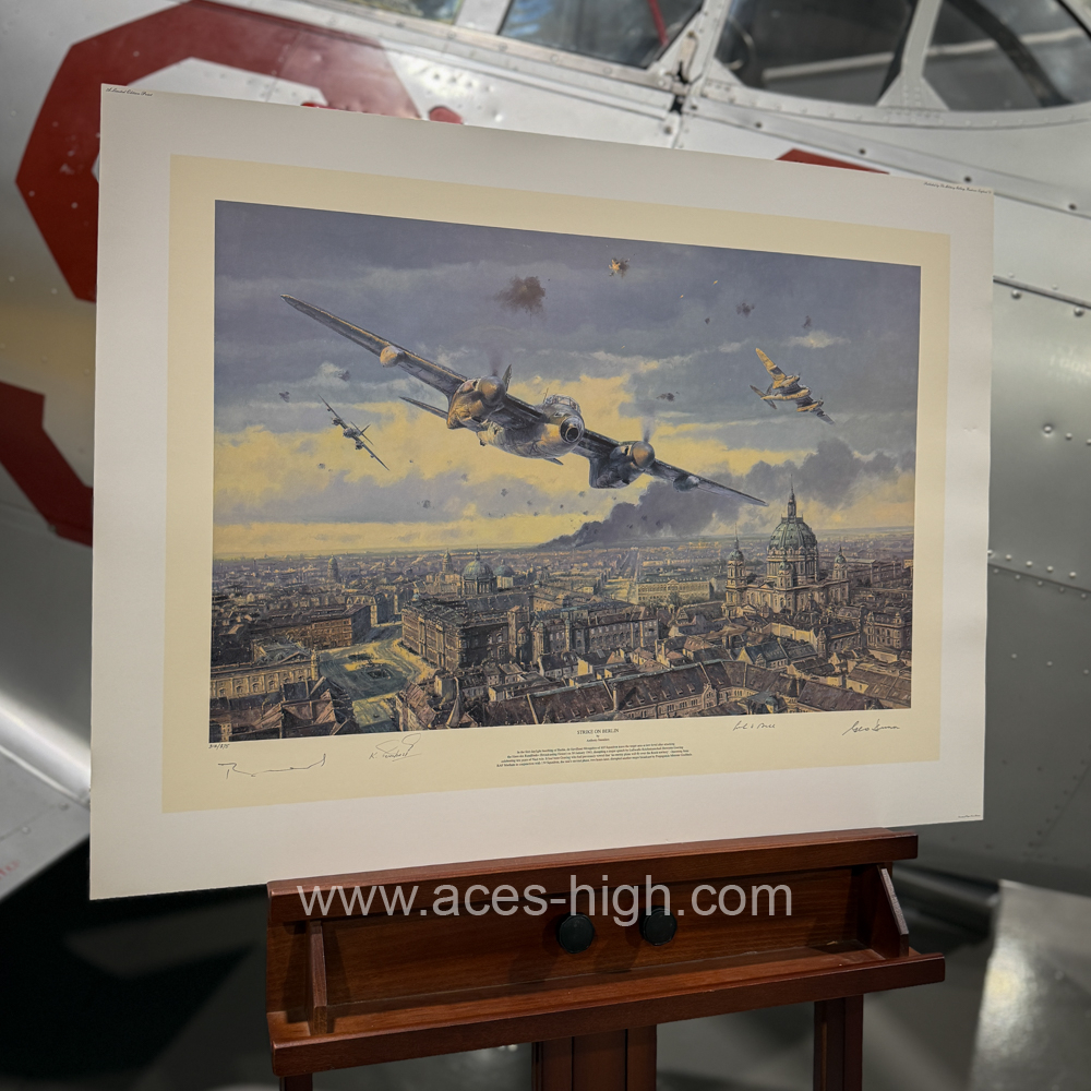 Each print has been hand numbered and personally signed by the artist. Importantly no less than three highly distinguished Mosquito crew who flew many of those dangerous missions to Berlin have personally signed every print in this release.