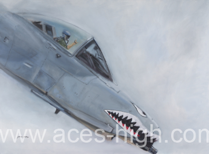 This premium print depicts the cockpit of an A-10 Thunderbolt II with remarkable detail and texture, rendered using classical fine art technique. The grey background provides a neutral contrast that enhances the intricate lines and instruments within the cockpit, emphasizing the rugged, utilitarian design of this iconic close air support aircraft. The muted tones of the aircraft controls and canopy frame stand out against the smooth grey, conveying the strength and resilience associated with the A-10. This artwork captures both the mechanical complexity and the purposeful simplicity of the cockpit environment, making it a compelling piece for military aviation enthusiasts.