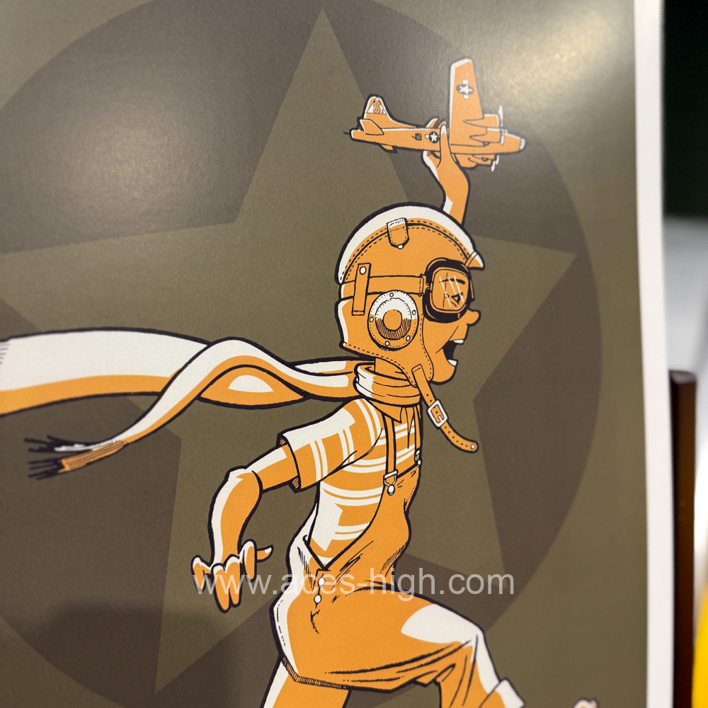 Rob Schwager’s prints celebrate bold color, vintage aesthetics, and cultural storytelling. His editions span hand‑crafted silkscreen concert posters, punk rock flyers, and striking fine art pieces inspired by mid‑century Americana and WWII aviation. Each print reflects his three decades of creative work, uniting dramatic palettes with themes of resilience, nostalgia, and heroism. From the energy of underground music culture to the spirit of bomber nose art, Schwager’s prints preserve moments of history and pop culture in vivid, collectible form.