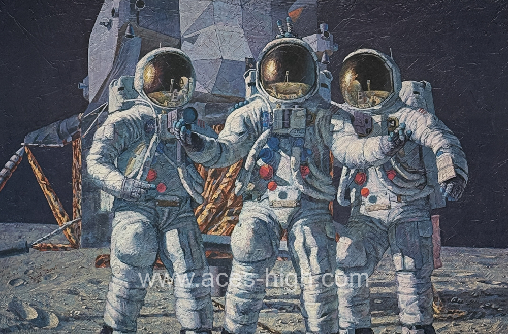For the mission, Dick was assigned the role of staying back in the command module 60 Miles away from the moon as it wasn't designed to land, merely to demonstrate its capabilities of the Lunar Module. However Bean and Conrad always wished that Dick would be able to join them for all the fun. This piece shows Bean and Conrad's fantasy of being with their fellow astronaut Dick accompanying them on the moon.