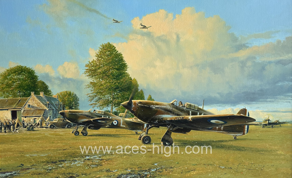 Flying from ill-prepared grass strips, with groundcrews making the best of what meagre facilities were on hand, the Hurricane pilots literally flew themselves to a standstill. An old farmhouse has been commandeered and now doubles up as flight operations, officers’ mess, and accommodation for the lucky ones.