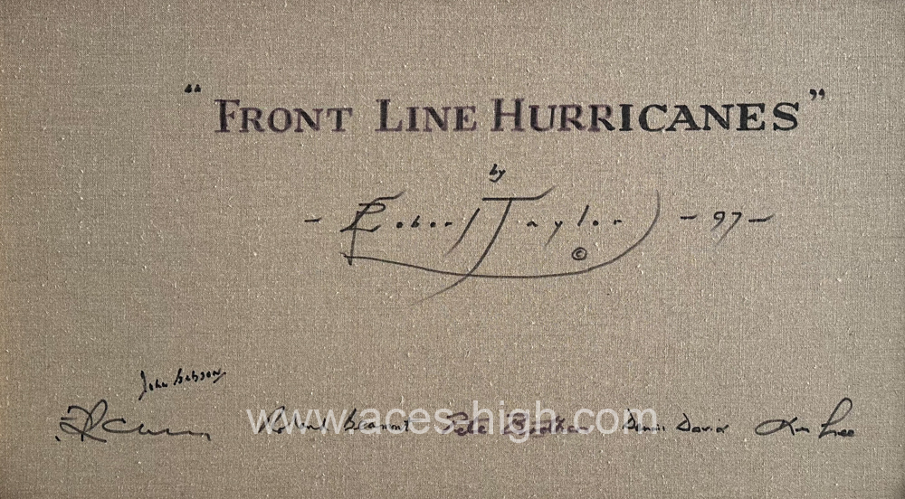 Personally autographed on the reverse of the canvas by Robert Taylor, alongside SIX of the great Aces of RAF Fighter Command. All flew Hurricanes during the Battle of France in 1940.