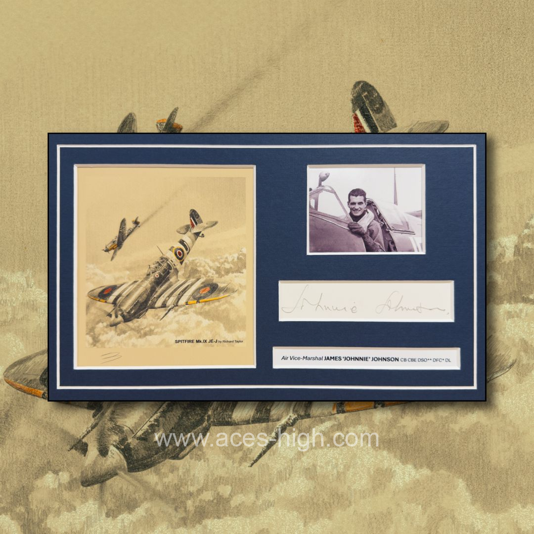 Professionally mounted to include a photo and the original autograph of the RAF's top fighter Ace...