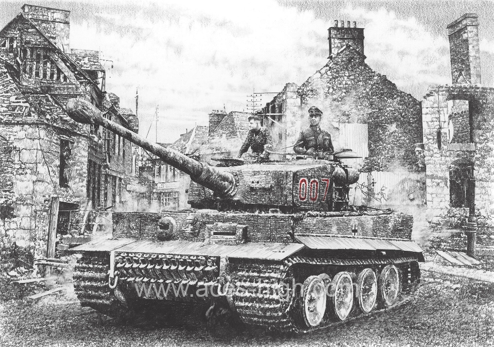 In his detailed drawing ‘Wittmann – Panzer Ace’ Richard Taylor takes a moment to reflect on the last days before his death. Away from the heat of battle, Wittmann and his men enjoy a brief but well-deserved moment of respite away from the front line.