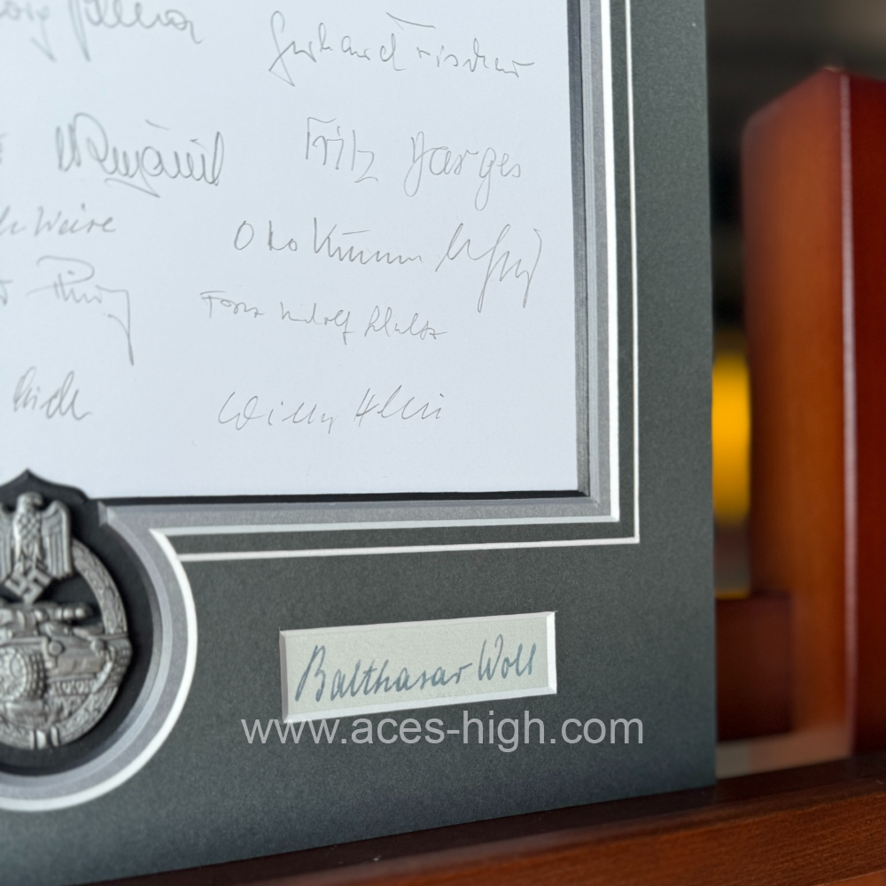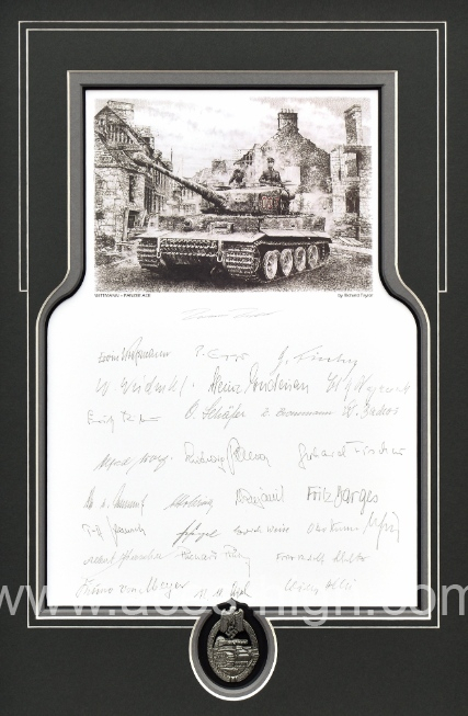 Only TWENTY mounted prints are available worldwide, each with at least TWENTY EIGHT original autographs – all of whom were recipients of the Knight’s Cross having served with Panzer tank divisions in the German army.