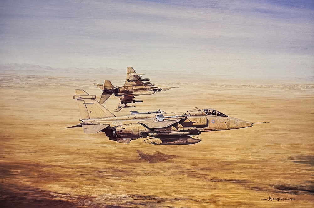 Before establishing a distinguished career as an artist, Michael served for 25 years with the Royal Air Force as a reconnaissance & ground-attack pilot and flying Jaguar fighter-bombers on combat operations during the First Gulf War. His unique perspective combines first-hand operational experience with exceptional artistic skill and has resulted in some of the most authentic and compelling depictions of modern air combat ever produced.