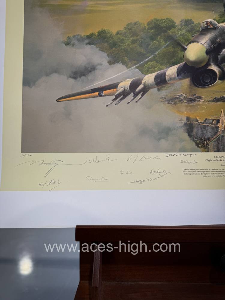 Robert has only once before depicted the Typhoon and in his usual unsurpassed style he captures perfectly the raw power and sheer ferocity of these awesome aircraft as they wreak havoc amongst the German artillery during the famous Battle for Normandy. As a lasting tribute to the brave young RAF Fighter Pilots of the twenty squadrons of rocket-firing Hawker Typhoons who flew those perilous ground attacks during the invasion, and with a possible FIFTY signatures available in the edition, CLOSING THE GAP continues to prove hugely collectable amongst aviation specialists.