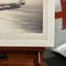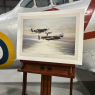 Formed in 1957, the RAF’s Battle of Britain Memorial Flight remains one of the world’s great ‘flying museums’, a proud tribute to Britain’s military aviation heritage. As well as the five Spitfires and two Hurricanes, the Flight contains one of only two airworthy Lancasters in the world. Although numerous photographs have been taken of the Memorial Flight, few artists have succeeded in capturing the ‘essence’ of the three most important World War II aircraft as Robert Taylor has achieved with this wonderfully evocative portrayal of the Memorial Flight flying in formation over the English Channel, the late afternoon sun glinting on the sea below.