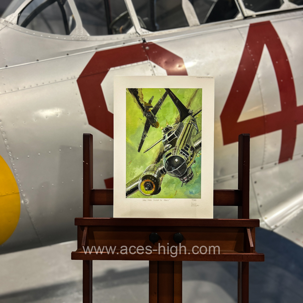In his exciting painting 'One More Closer To Home', award-winning artist Keith Burns illustrates just how dangerous tangling with an Eighth Air Force Fortress could be as he pilot of a Bf109 gets more than he bargained for whilst trying to intercept a B-17G of the 351st Bomb Group heading home to Polebrook.