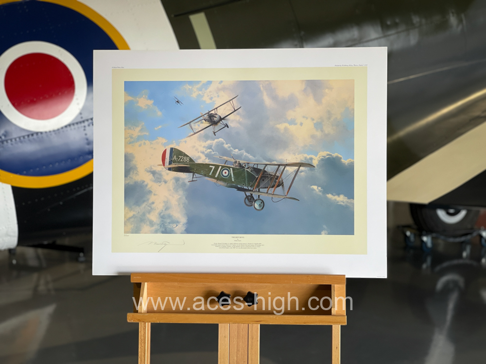 It is incredibly rare to find editions that have been personally signed by aviators of World War One, so this release by the master of Aviation Art is particularly special. Part of the edition was signed some years ago and kept in storage which explains these outstanding signatures: