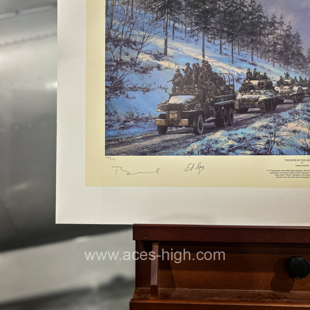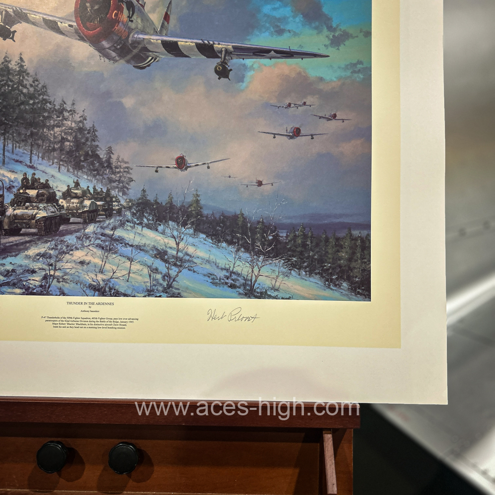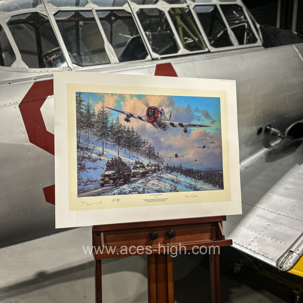 Joining artist Anthony Saunders, each print has been personally signed by two highly distinguished P-47 pilots who took part in the Battle of the Bulge: