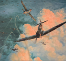 Me109’s from 1./JG51 and Spitfires of 54 Squadron clash head-on over Kent as the unit dives into a formation of Me110s from KPRG210. It is 54 Squadron’s third and final sortie of the day, early evening on Sunday 18 August 1940, at the end of the hardest week of fighting during the Battle of Britain. In the distance a group of Hurricanes tear in to a formation of Do17s from KG76 as they too...