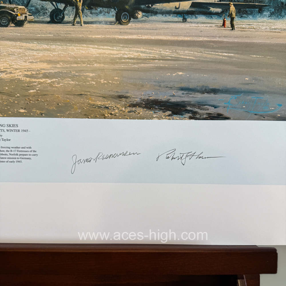Joining artist Robert Taylor in signing every print are three distinguished aircrew who flew B-17s on operations with the 100th BG from Thorpe Abbotts during WWII: