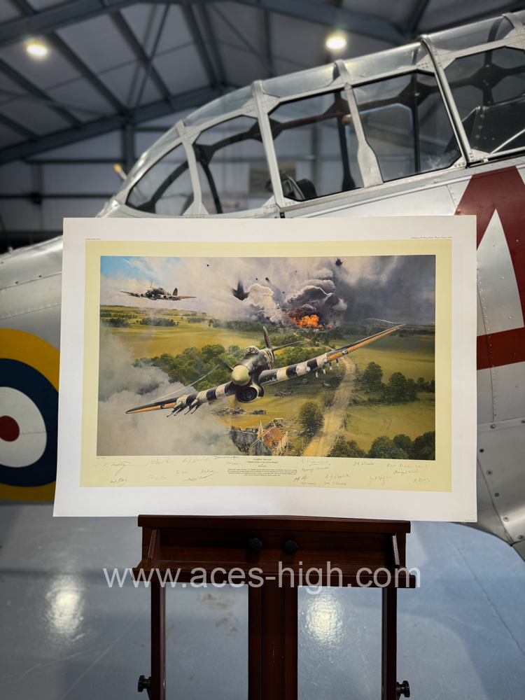 This impressive edition commemorates both the British Air and Land Forces who fought so valiantly in the grueling Battle of Normandy. Joining the ten RAF fighter pilots on the Typhoon Edition, each print is additionally signed by ten British Army veterans who fought in the Normandy breakout, making a total of TWENTY signatures in this edition.