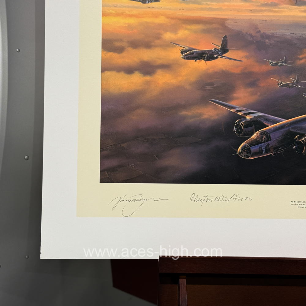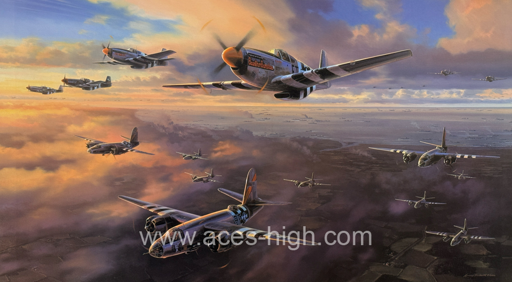 There was never a greater concentration of air power deployed in an active theater of war as over the English Channel in May and June 1944. As D-Day approached, the USAAFs Ninth Air Force had assembled over 3500 aircraft a day, they were pounding enemy positions all the way from Pas de Calais to the coast of Normandy. 6 June 1944, arguably the most decisive single day in modern military history, saw the sky filled with waves of troop carrying aircraft towing gliders, dropping over 20,000 highly trained men in support of the massed sea-borne landings on the beaches below. Grabbing all the airspace they could find, the combat wings of the Ninth Air Force were creating havoc among the German ground forces as they scrambled to get troops and armor to the battlefront.