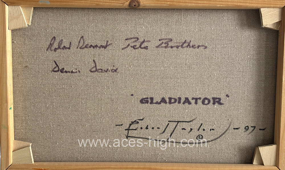 Personally autographed on the reverse of the canvas by Robert Taylor, alongside SIX of the great Aces of RAF Fighter Command. All flew Hurricanes during the Battle of France in 1940.