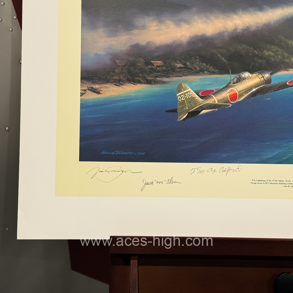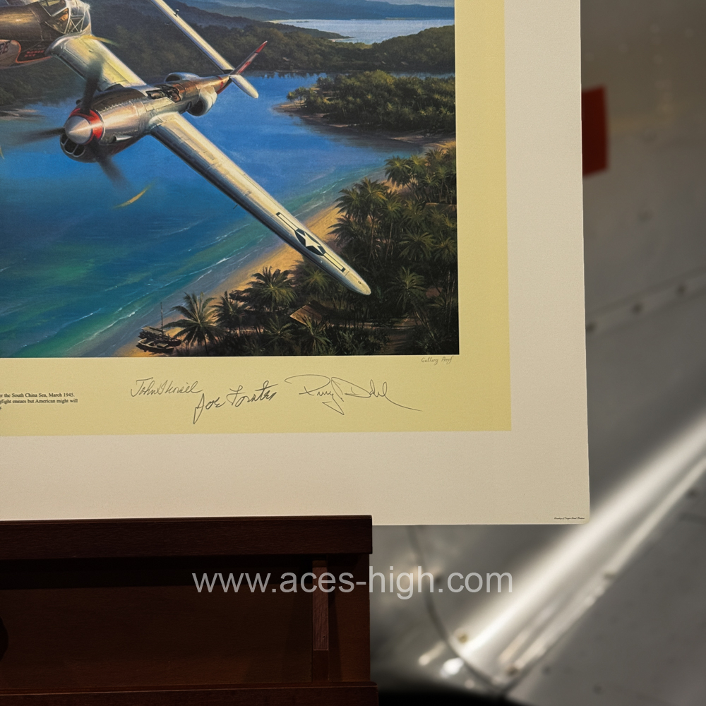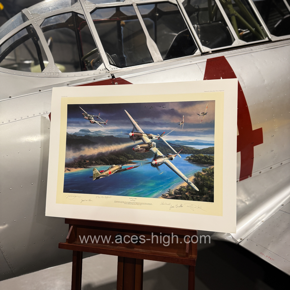 This truely captivating piece has been signed by the artist as well as FIVE P-38 pilots: