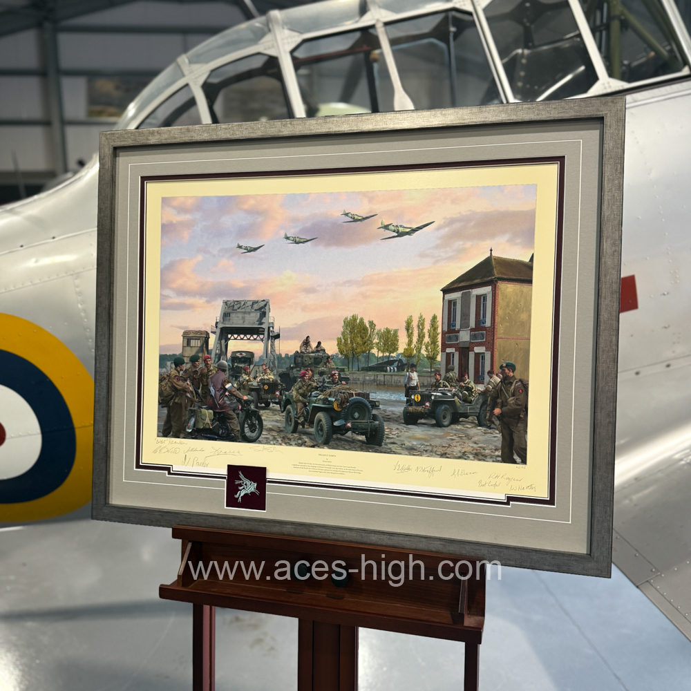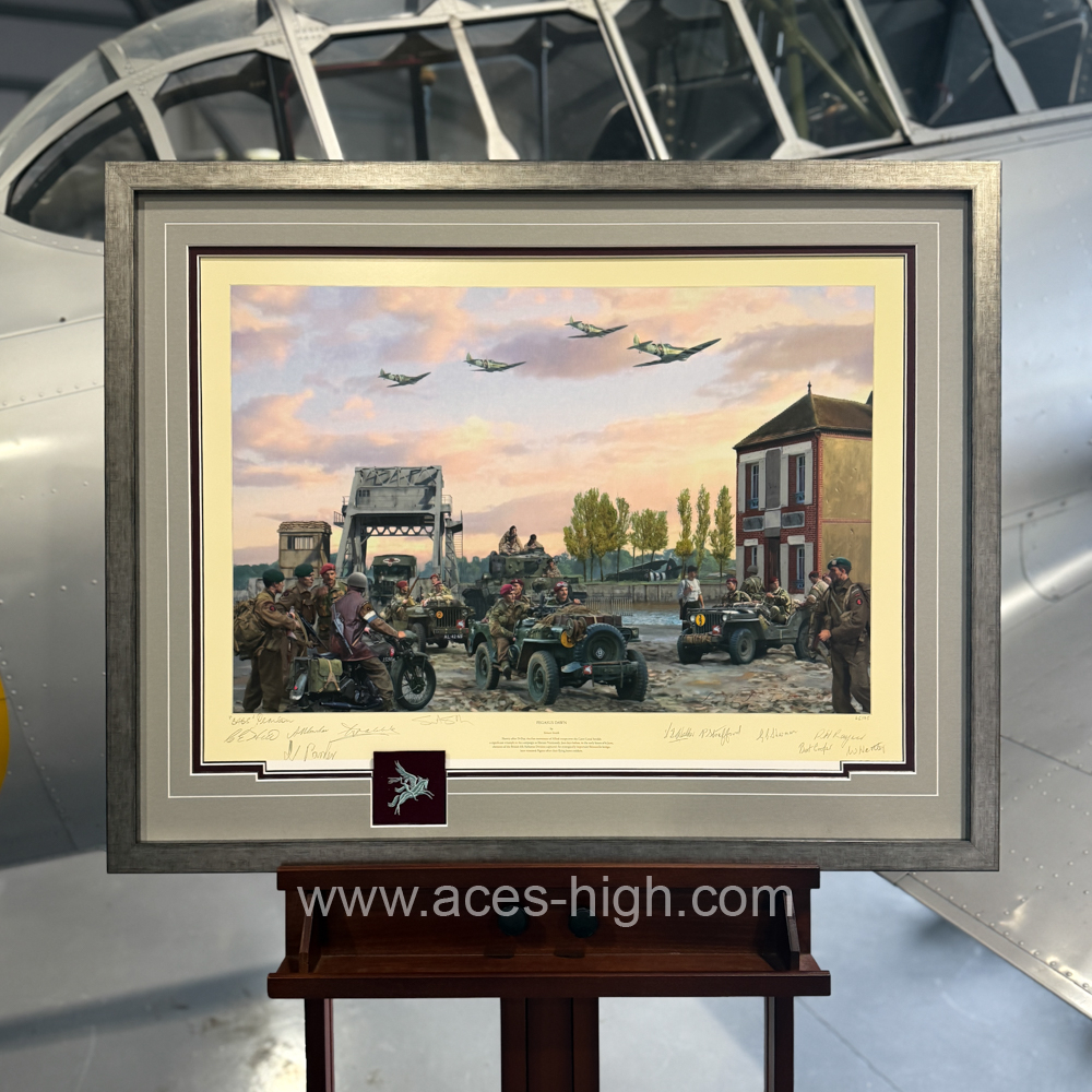 Framed to full conservation standards to include a museum-quality reproduction 6th Airborne Pegasus patch, and to add further authenticity to this edition the print carries the signatures of ELEVEN British veterans: