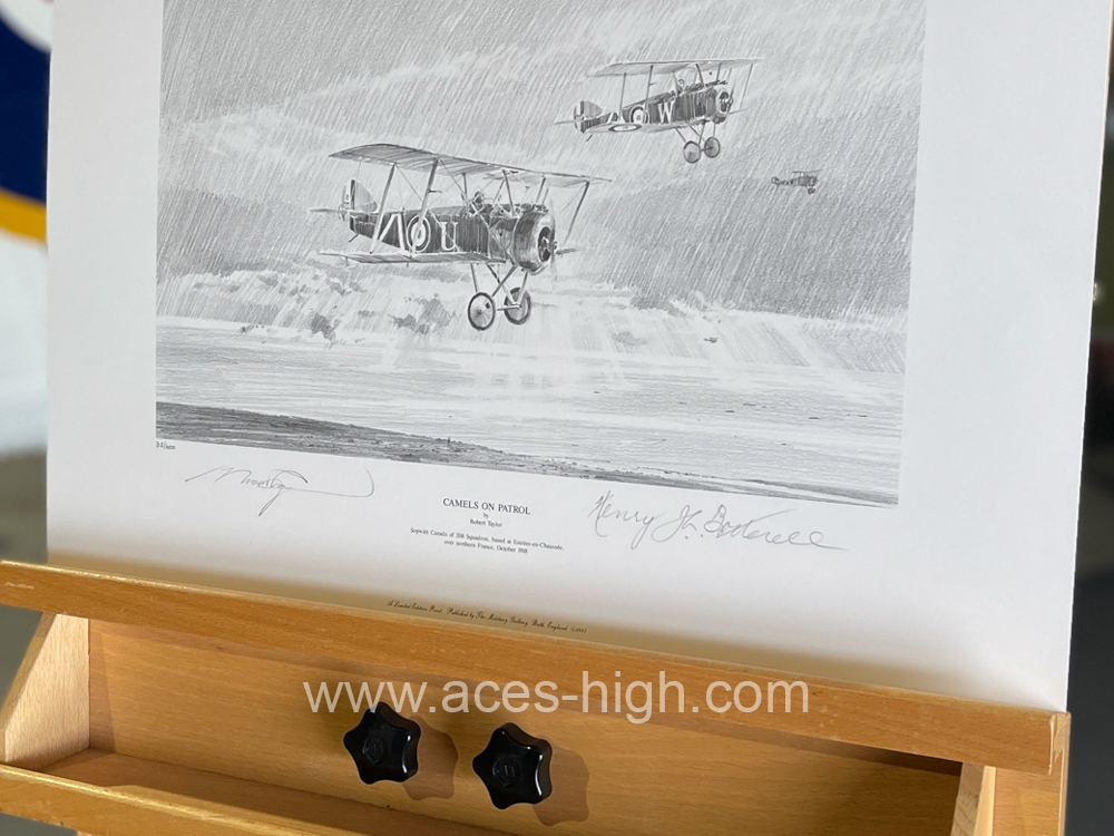 Every print in the edition has been signed by the artist Robert Taylor and hand-numbered, and is issued as a pair with a matching-numbered companion drawing CAMELS ON PATROL signed by World War One fighter pilot: