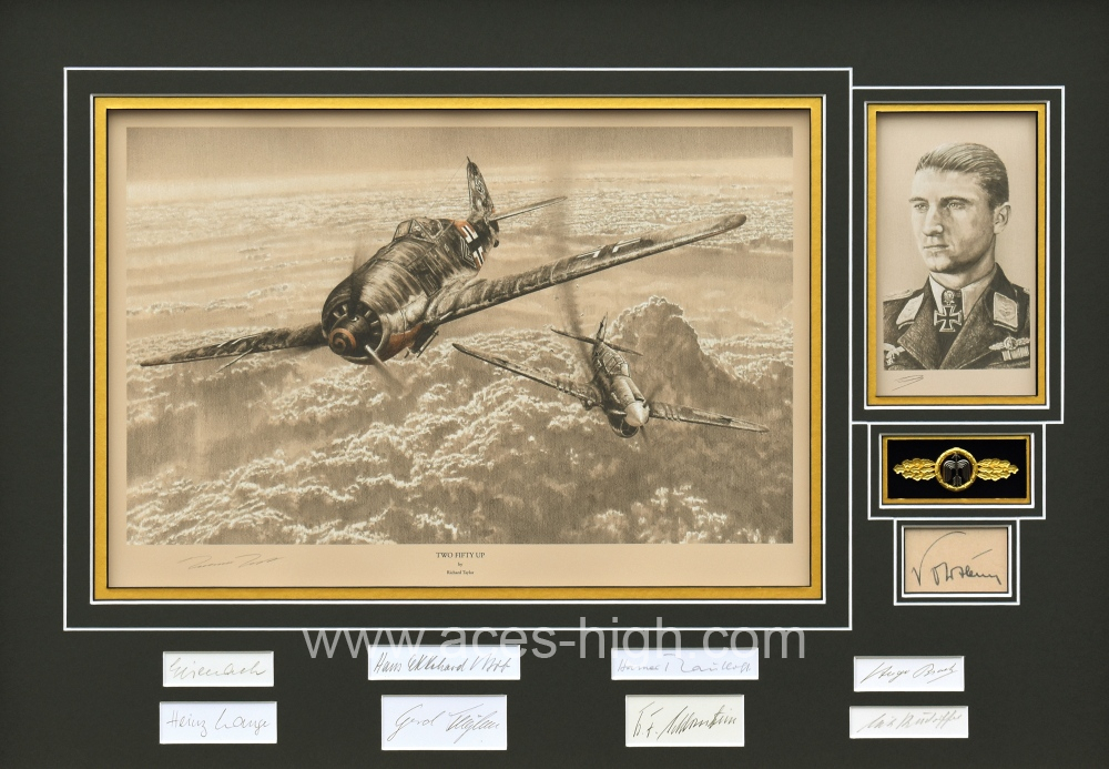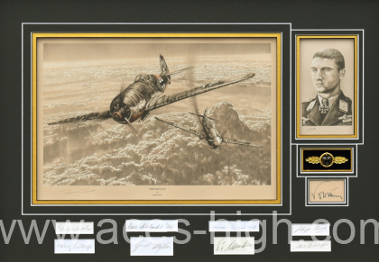 Alongside are a total of NINE original autographs of highly acclaimed Luftwaffe pilots who flew Fw190s in combat during the Second World War. Each also flew with JG54, plus notably they all achieved Ace status. These include the RARE autograph of the legendary Ace depicted, Walter Nowotny, along with a 'who's who' of notable JG54 pilots and leaders. Between them, these nine names amassed over 1,000 combined victories.