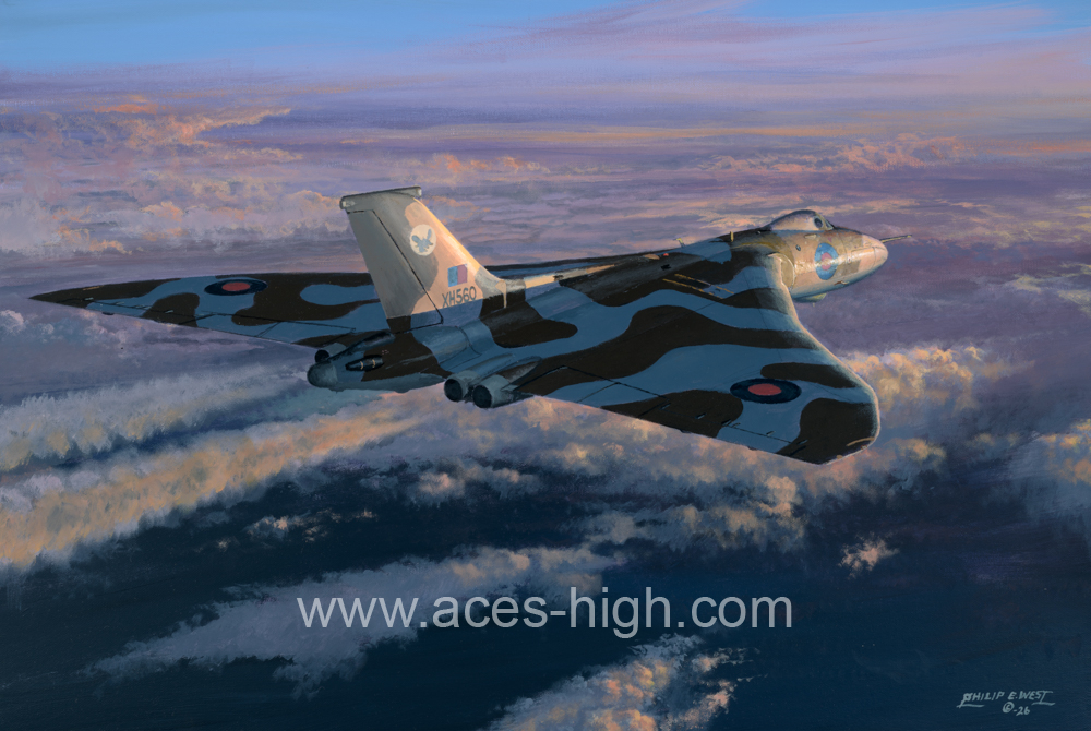 Although we might never see or hear a Vulcan flying again, we are fortunate that leading aviation artist Philip West has given us ‘Vulcan Legend’, a superb portrayal of this much-loved aircraft in the form of Vulcan B. Mk2 MMR that was based at RAF Scampton with 27 Squadron.