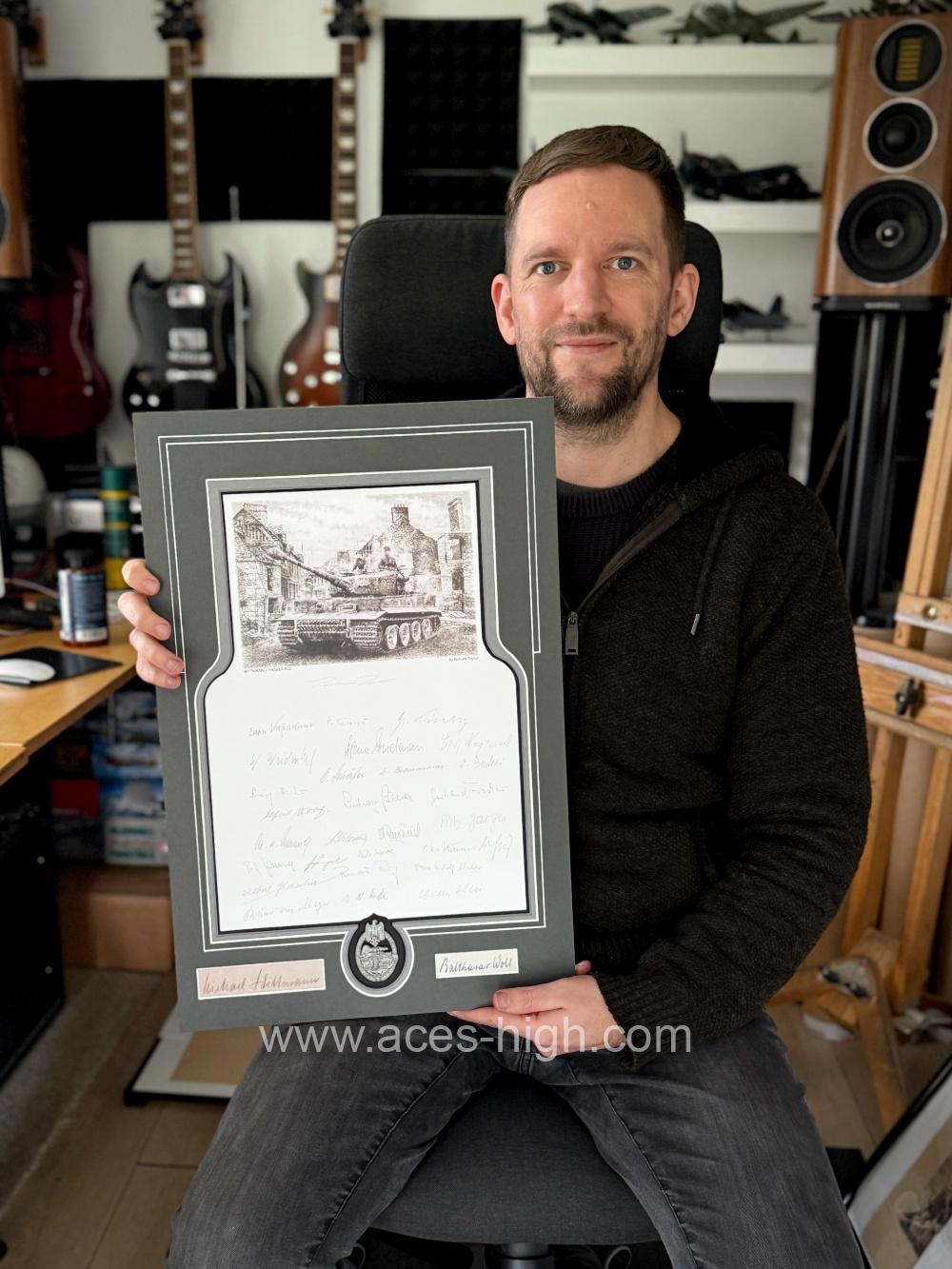 Each COLLECTOR’S EDITION print is then mounted to full conservation standards to include a museum-quality reproduction Panzer Badge.