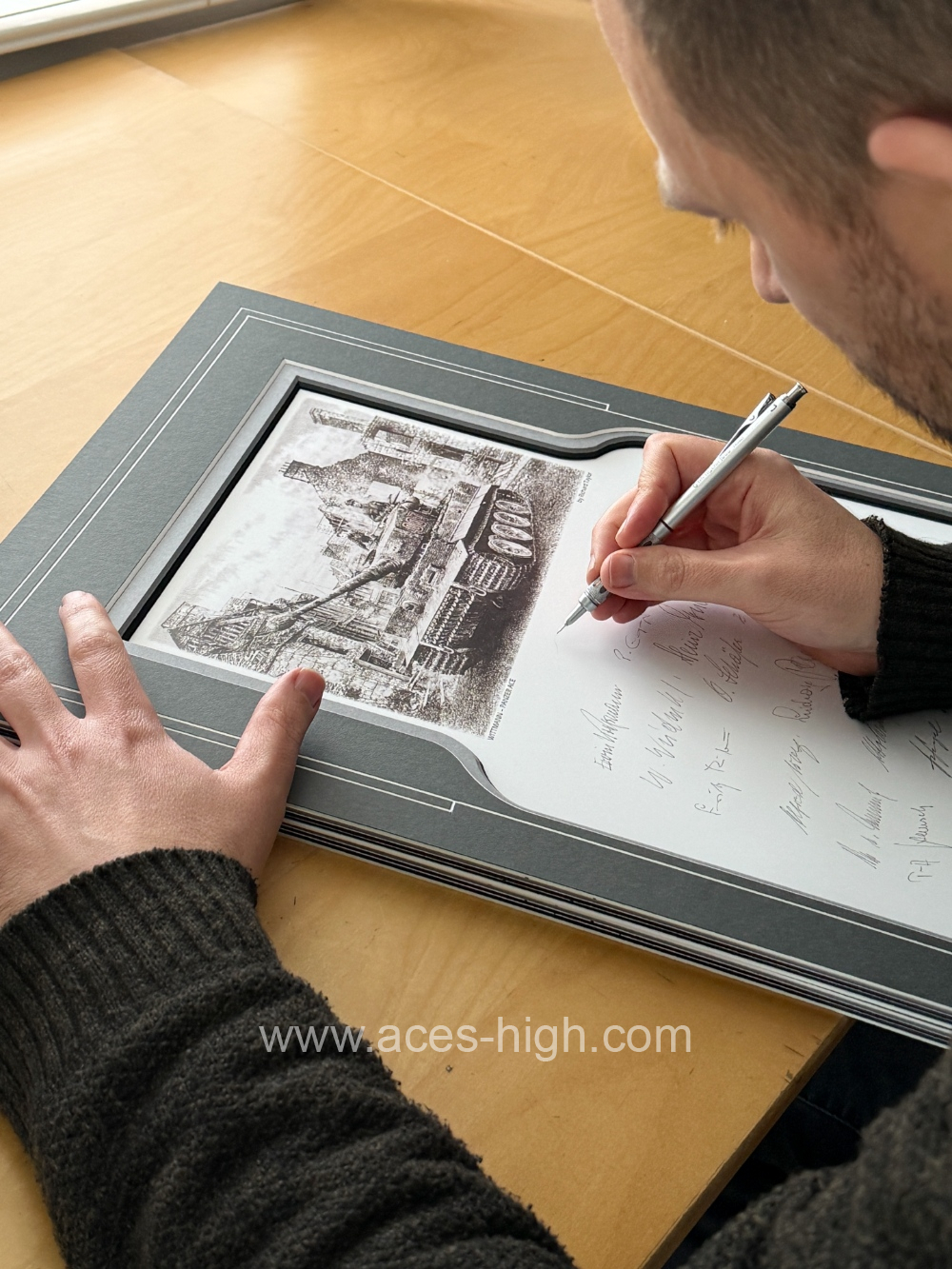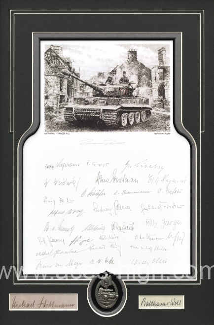 Only TWENTY mounted prints are available worldwide, each with at least TWENTY EIGHT original autographs – all of whom were recipients of the Knight’s Cross having served with Panzer tank divisions in the German army.