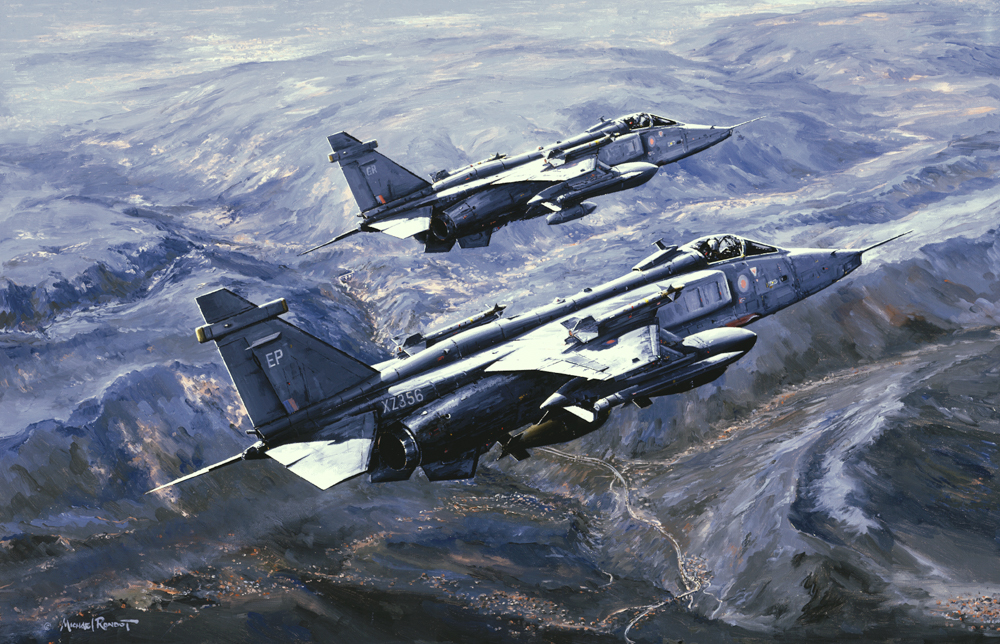 Before establishing a distinguished career as an artist, Michael served for 25 years with the Royal Air Force as a reconnaissance & ground-attack pilot and flying Jaguar fighter-bombers on combat operations during the First Gulf War. His unique perspective combines first-hand operational experience with exceptional artistic skill and has resulted in some of the most authentic and compelling depictions of modern air combat ever produced.