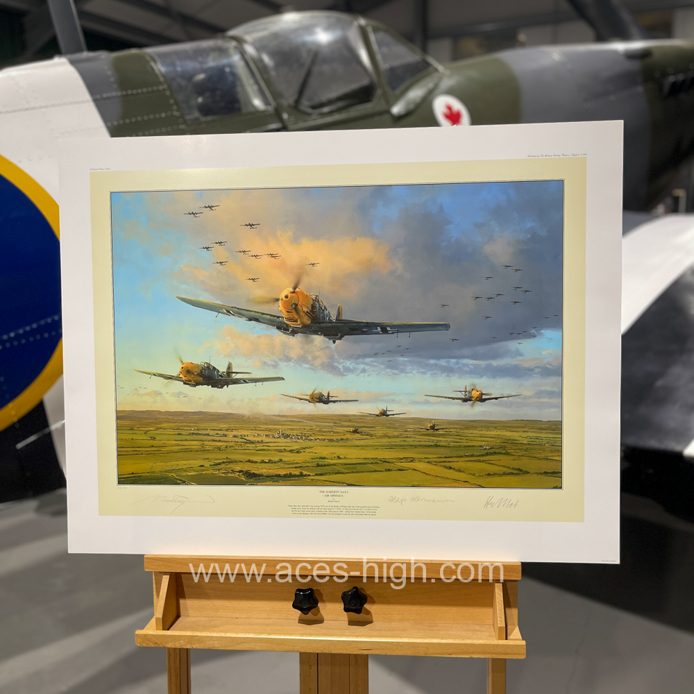 This outstanding ELEVEN signature edition contains some of the most famous Battle of Britain Luftwaffe pilots, achieving a staggering 1296 victories between them, and including the extremely rare original signature of Heinz Bär. It is a unique opportunity for serious collectors to acquire a fitting and lasting tribute to the outstanding airmen involved in the Battle of Britain. With all the signatures and components of the Anniversary Edition, every print in this special Tribute Edition is accompanied by a substantial ORIGINAL pencil drawing individually crafted for you by the world’s premier aviation artist Robert Taylor. Each drawing is different and will feature aircraft relevant to the painting 'Air Armada', the first in Robert Taylor’s new Battle of Britain Trilogy 'The Hardest Days'.