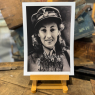 Will Seymour has created a truly captivating portrait of Vera Lynn, set above an evocative scene inspired by the street celebrations of Victory in Europe Day, 1945. Vera was a beloved singer whose voice became a symbol of hope during the Second World War. Affectionately known as the “Forces’ Sweetheart”, she travelled to Egypt, India and Burma to perform for the troops as part of the Entertainments National Service Association.