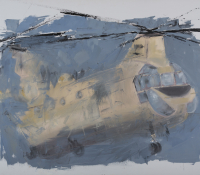 This oil painting features two F-15s soaring against a stark white background, emphasizing their sleek forms and dynamic movement. Painted entirely with a palette knife, the texture is bold and tactile, giving the jets a rugged, almost sculptural quality. The sharp edges and layered strokes highlight the strength and precision of the aircraft, while the minimal background keeps the focus solely on the powerful machines in flight. The use of palette knife adds depth and intensity, capturing both the mechanical and heroic essence of modern military aviation.