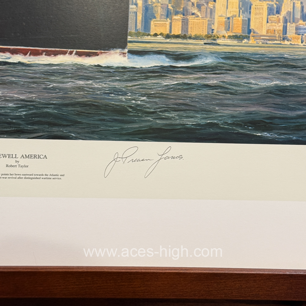 Eah print is individually hand signed by the artist Robert Taylor and countersigned by R.M.S. QUEEN MARY's last skipper: