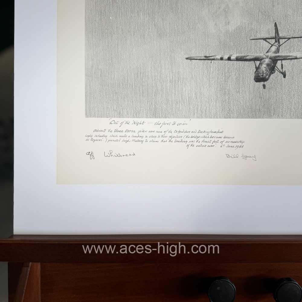 This graphite edition from the master aviation artist is another tribute to the men that fought for during D-Day and carries a superb line up of original signatures of veterans who fought in the epic encounter at Pegasus Bridge, assaulted the beaches and one of the six Halifax pilots who towed the gliders into action on that momentous night.