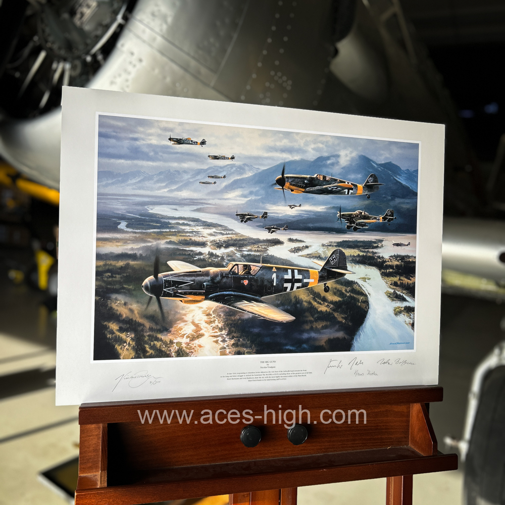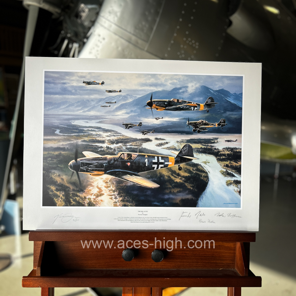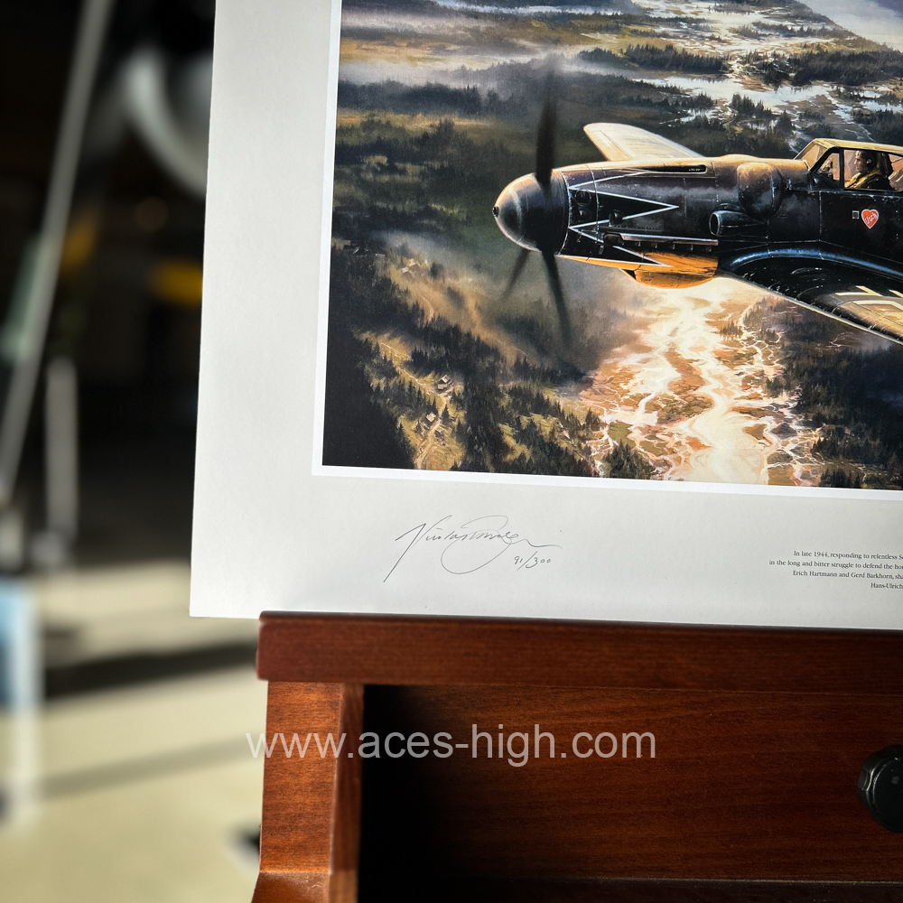 This excellent Limited Edition print ha sbeen signed by the artist and two Me109 pilots from JG-52, and a Stuka radio operator from SG-2: